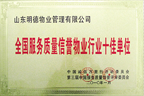 全国服务质量信誉物业行业十佳单位